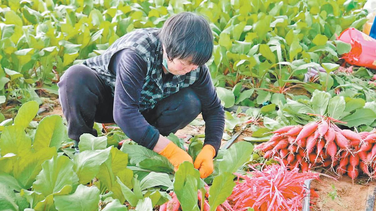 定边街道十里沙村大棚水萝卜新鲜上市。马晓妮 摄