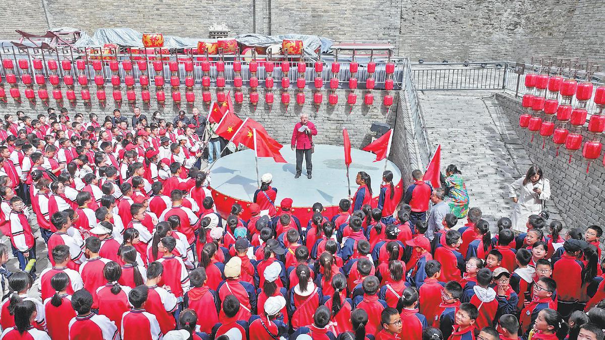 随后,全体师生在古城墙前举行了庄严的重温誓词仪式。党员重温入党誓词,团员重温入团誓词,少先队员重温入队誓词。铿锵誓言回荡在城墙之间,身份认同与责任意识在每个人心中进一步强化。