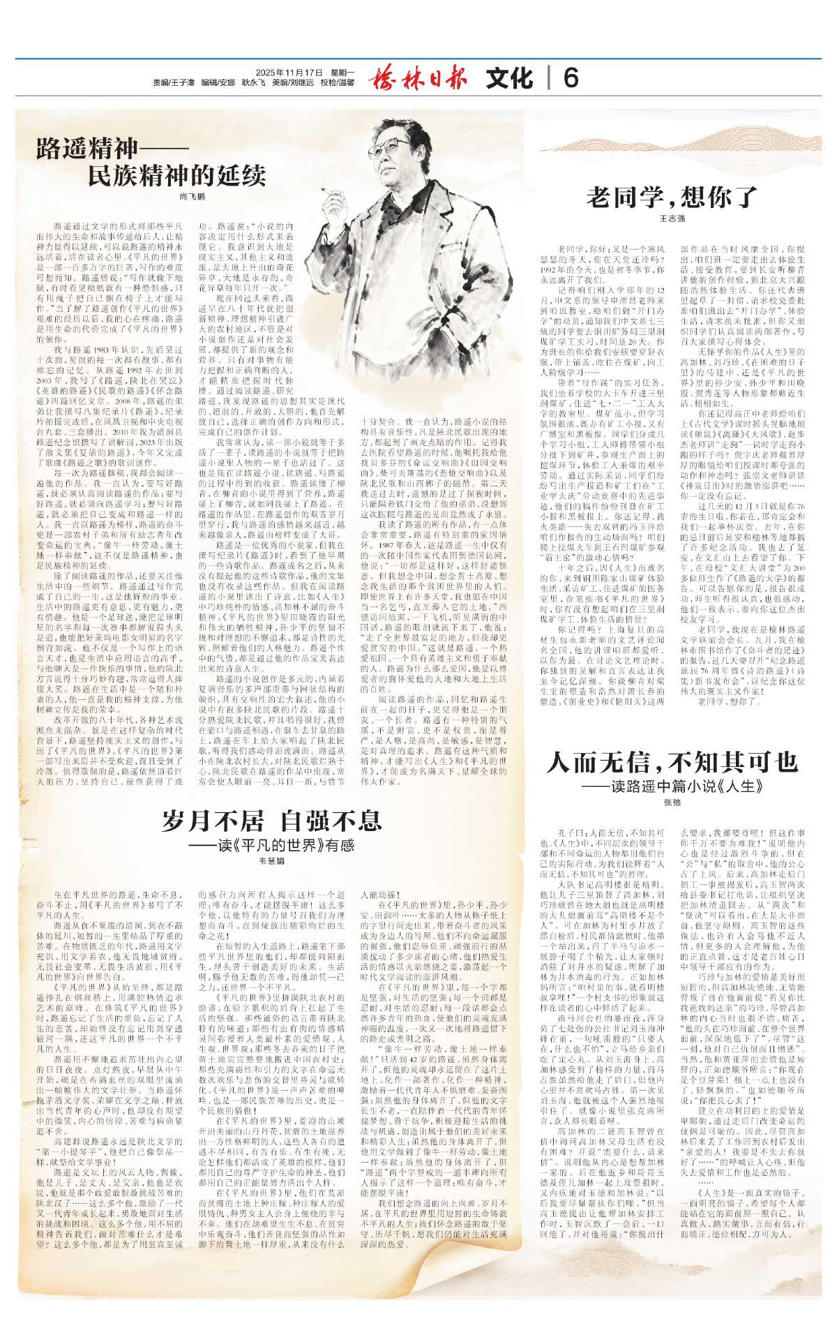我们想念路遥的向上向善、岁月不居,在平凡的世界里用短暂的生命铸就不平凡的人生;我们怀念路遥的敢于坚守、历尽千帆,愿我们仍能对生活充满深深的热爱。