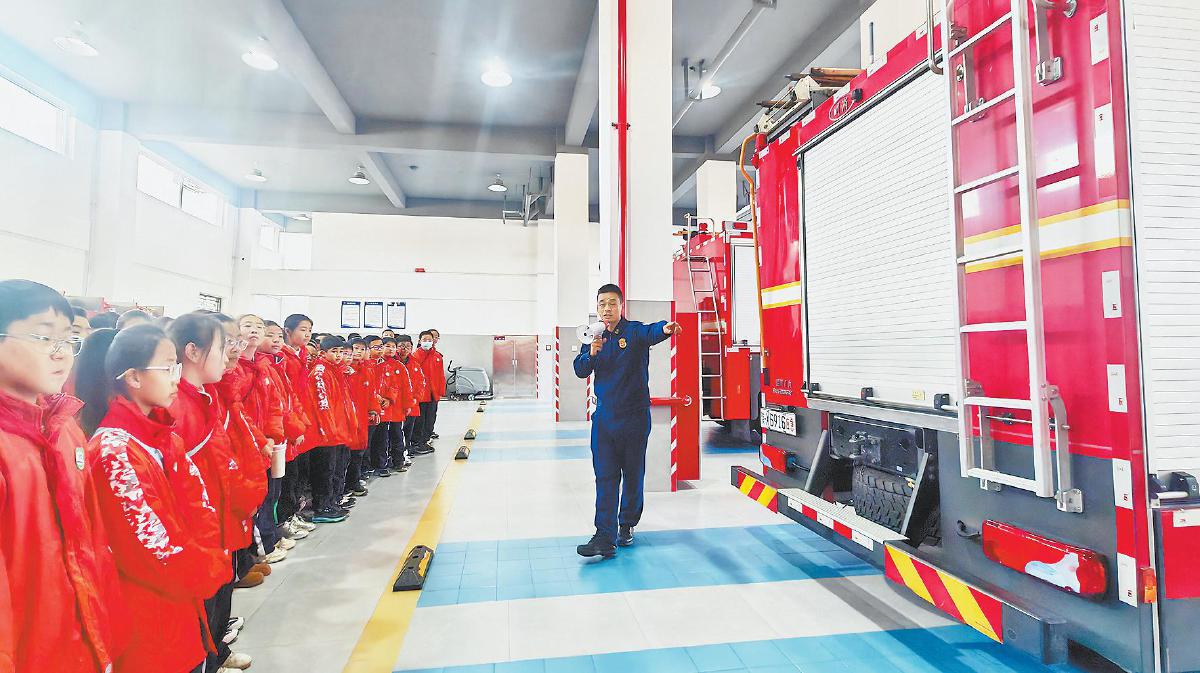 本报讯(记者 赵娜) 近日,榆林市第四小学组织部分师生走进榆阳区消防救援大队开展研学活动,让学生近距离学习消防知识,筑牢校园消防安全防线。